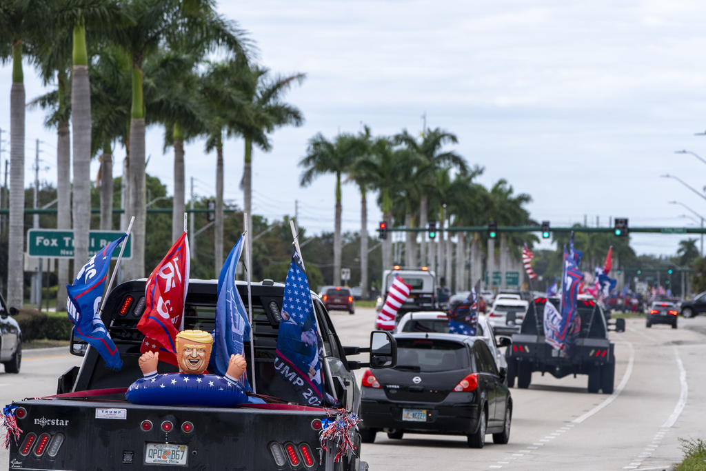 Supporters of President-elect Donald Trump participate in a victory parade, Sunday, Nov. 17, 2024, in West Palm Beach, Fla. (AP Photo/Alex Brandon) |